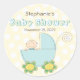 Redonda Baby Boy Blue Pram Polka Dots Baby Shower Pegatina