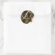 Pequeño orangután pequeño lindo colgado en la red y sacando la lengua. Pegatina humorístico para su correo u otros proyectos.