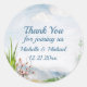 pegatinas para un único boda con temática playera. Decorar las cajas o bolsos, editarlas como pegatinas de agradecimiento, etc. Impreso con una playa pintoresca y un fondo de surf con suaves acentos botánicos. El texto con formato está listo para que usted lo edite con sus propios detalles en el sencillo editor de Zazzle. Coordina con muchos otros elementos de nuestra colección de diseño Dune Beach Romance. Creado en parte con uso comercial, arte adquirido bajo licencia por Andjelina's Designs.
