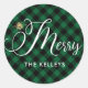 Redonda Bee Merry, Green Buffalo Check Round Gift Pegatina