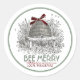 Redonda Bee Merry Holiday Honey Skep con Red Bow Pegatina