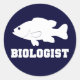 Silueta de pez sol con "Biólogo" con letras de estilo colegiado. Blanco sobre fondo azul oscuro, fondo es personalizable.
