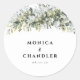 Boda de hierbas verdes Pegatina de Ronda Clásica. Esta elegante y elegante invitación a las bodas cuenta con magníficas acuarelas pintadas a mano, eucalipto, un verde floral. Encontrar elementos coincidentes en la colección vegetal de flores frescas