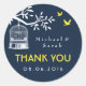 Rústico y clásico gracias diseño pegatina con jaula de pájaros vintage colgando de un árbol y dos pájaros amorosos volando libre. Celebra tu día especial con amor y libertad por todas partes. Personalizar y personalización de la redacción para que se ajuste a cualquier ocasión. Fiesta de cumpleaños, aniversario, ducha de novia, ducha de bebé, fiesta de compromiso o cualquier cosa. Obtén una invitación coincidente, tarjeta RSVP y sello postal de mi tienda zazzle.