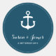 Pegatina de temática náutica moderna con ilustracion de ancla sobre fondo marino. Perfecto para los favores de la boda náutica.