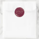 Elegante ronda gracias pegatina con un rico fondo burdeos, acentos dorados florales y brillantes luces de cuerda. Personalice con sus nombres y fecha de boda, perfecto para sellar bolsos de favores, sobres o cajas de regalo en la rústica caída o romántico boda nocturno.