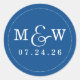 Redonda Boda encantador Pegatina de Monograma - Cobalto