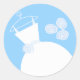 pegatina de temática bonito pastel con bata boda estilizada y flores en tonos azules y blancos. Un diseño de personalizable para que puedas personalizar con tu propio texto, imágenes e ideas.