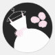 pegatina de temática bonito pastel con bata boda estilizada y flores en tonos rosa, negro y blanco. Un diseño de personalizable para que puedas personalizar con tu propio texto, imágenes e ideas.