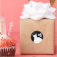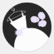 pegatina de temática bonito pastel con bata boda estilizada y flores en tonos violeta, negro y blanco. Un diseño de personalizable para que puedas personalizar con tu propio texto, imágenes e ideas.