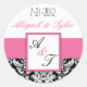 Redonda Boda negro rosado Monograma Damask Pegatina