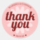 Un pegatina lindo, divertido y único para agradecer a sus invitados por unirse a usted en su día especial. diseño rosa bonito y marrón con una flor rosa pastel, fondo rosa y texto marrón