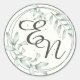 Redonda Boda ruso Monograma verde hojas redondas Pegatina
