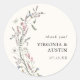 Elegante y con estilo, este Boda rústico Gracias Pegatina presenta una preciosa coloración de agua pintada a mano, rosa, violeta y azul pastel, flores silvestres y una vegetación ardiente con una mariposa blanca adornada con un bonito ramo vintage sobre un fondo de marfil. Encuentre artículos de coordinación en las colecciones de Bodas de Flores Silvestres del Pastel Elegante.