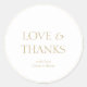 Este encantador boda blanco, sencillo, gracias pegatina, presenta un texto de amor y agradecimiento en un estilo contemporáneo dorado y nombres de pareja.