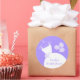 pegatina de temática bonito pastel con bata boda estilizada y flores en tonos violeta y blanco. Un diseño de personalizable para que puedas personalizar con tu propio texto, imágenes e ideas.