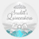 Pegatina de Quinceanera. Elegante diseño floral plateado giratorio y arco de joyas de bonito. ¡Todas las imágenes planas!