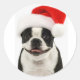 Disfrute de estos sonrientes perros del Boston Terrier en un pegatina de Santa hat. Él les pondrá una sonrisa en la cara y la alegría en sus corazones. ¡Ideal para las tarjetas de Navidad o como un obsequio de medias!