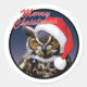Navidades Owl - Pegatina Redondo Clásico, Glossy. Contiene un escrito, "Feliz Navidad". ¡Feliz Navidad a todos!