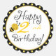 Abeja dulce de burbujas con marco de borde vieira Feliz cumpleaños pegatina.