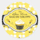 Abejas de burbujas dulces con impresión de puntos de polka y pegatina de negocios de quequitos deliciosos.