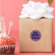Calabaza Halloween 'come, bebe y da miedo' Pegatina. El diseño presenta un borde de cabeza de calabaza tallada con un fondo interior morado. La frase 'Comer, beber y tener miedo' se imprime en una fuente llena de critter. ¿Por qué no agregas tu nombre? ¡Es estupendo añadir para el tratamiento de bolsas, tapetes de pastelitos o utilizar en los bufés de Candy para las etiquetas de Jar!