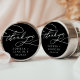 Estas románticas caligrafías negras gracias a los pegatinas son perfectas para una simple recepción nupcial. El moderno diseño clásico cuenta con unos llamativos remolinos y unos espléndidos florecientes floridos, con una preciosa y elegante tipografía con letras a mano sobre un fondo negro oscuro. Personalice las etiquetas del pegatina con sus nombres, el evento (si procede) y la fecha. Estos pegatinas pueden ser usados para una boda, una ducha de novia o cualquier evento.