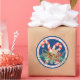 Aquí hay una pegatina navideña de estilo vintage con un fondo azul que explica la Feliz Navidad y presenta latas de dulces, una estrella de pan de jengibre, adorno, conos de pino y ramas siempre verdes con bayas huecas. Diversión de mostrar en sobres, tarjetas, regalos y más!