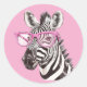 Redonda Cebra con Gafas rosadas Pegatina BG rosa claro