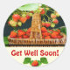 Deliciosas fresas, de cultivo orgánico, maduras, con canasta. El texto es "¡Ponte bien pronto!" pero es bastante fácil cambiarlo para adaptarlo a tus necesidades. ¿Necesitas ayuda? Es gratis, por favor pregunta.