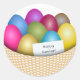 Un pegatina con una canasta de Pascua y huevos de colores. Semana Santa!