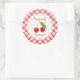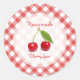 pegatinas retro de personalizable para mermelada de cerezo casera, gelatina o conserva jarras con cerezas frescas sobre manteles de gingham rojos y blancos. Pueden ser pegados en la tapa o en el propio frasco y tener una colección personalizada. También hay otros pegatinas de mermelada de frutas a tu disposición.