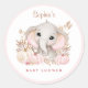 Chica Caída Elefante Rosa Baby Shower Clásico Pegatina Redondo. Un Pequeño Chica De Elefantes Con Calabazas Rosadas Y Hojas De Palm De Oro Subió. Elementos Coincidentes En Mi Tienda.