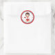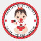 Este pegatina redondo clásico de la ducha de bebé está decorado en tonos rojos, blancos y negros con diseño de mariquita. El pegatina está diseñado con una linda niña y un fondo de punto de polka, ideal para el fiesta de la ducha de bebé chica. Puede personalizar el texto, incluida la edad.