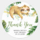 Redonda Chico tropical Sloth Baby Shower Gracias Pegatina