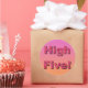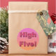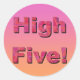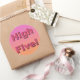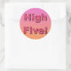Pegatina redondo con ese eslogan que comenzó en los años 80 "High Five" en letras geométricas vibrantes rosa y naranja sobre naranja oscuro y rosa. Vea la correspondencia entre el pegatina de vinilo cortado por personalizado, el confetti, la etiqueta de favor, la etiqueta y el papel de envoltura. Ver toda la colección de Pegatinas Tubular 80 en los INVITES | Sección Pegatinas y etiquetas.