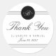 Personalizar de esta moda elegante elegante monograma Boda blanco y negro Gracias Pegatinas de Round Favors. Diseño moderno, limpio y nítido, con texto negro y diseño en un fondo blanco.