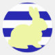 Elegante y Lindo Conejo / Silueta de Conejo Amarillo, Fondo de Rayas Azules y Blancas Pegatina de Regalo de Boda / Otro Propósito para agregar a tu colección de accesorios. Una idea de regalo genial / presente para todos los que aman los artículos personalizados de diseño personalizado, vibraciones positivas, diversión, alegría, etc. Palabras clave: fiesta de cumpleaños, mascota, animal, Pascua, rosa, coral, turquesa, verde, etc.