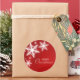 Pegatinas navideñas de personalizable con ilustracion de copos de nieve blancos sobre fondo rojo y saludos de temporada. Puede personalizarlo con su propio texto personalizado. Productos de papel, sellos y regalos para Navidades disponibles.