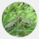 Esta hoja de pegatinas redondos muestra una hermosa foto de un balanceo de la mosca Crane sobre algunas hojas de pasto. La fotografía es tan detallada que se puede ver el detalle intrincado en las alas de las criaturas y sus piernas completamente extendidas que hacen que algunas personas teman por ello.