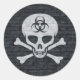 Cráneo del símbolo del Biohazard y pegatina de la pintada de la bandera pirata con un fondo gris del ladrillo.
