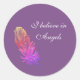 Creo en los ángeles, el dibujo de plumas, el pegatina morado. Fácil de personalizado de tu texto y fondo .