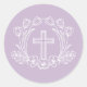 Redonda Cruz Floral Simple en el Pegatina Lilac