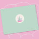 Adorable color crema alrededor del pegatina Holiday con dos oseznos polares decorando un árbol de Navidad . Personalízalo con tu propio texto . También disponible en azul. © ArianeC Ilustraciones-Todos los derechos reservados