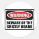 Redonda CUIDADO CON EL Pegatina DE LOS OSOS GRIZZLY