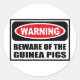 Cuidado con el Pegatina GUINEA PIGS que puedes hacer personalizar en www.WarningSignShirts.com y presenta un aviso rojo y negro y CUIDADO CON LOS PIGS GUINEA en negritas letras negras para avisar al mundo. También puede personalizar a su propio Pegatina de signos de advertencia con el texto que desee.