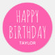 Redonda Cumpleaños Feliz Moderno Sencillo Pegatina Rosa