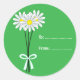Un pegatina de etiquetas de regalo con un ramo de margaritas blancas sobre un fondo verde. ¡Flores para tus regalos y mensajes!