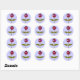 Este peculiar conjunto de pegatinas redondos presenta una imagen digital de una margarita con un tallo verde con dos hojas verdes sobre ella y pétalos de color púrpura, rojo y negro con un centro púrpura. Los pétalos parecen hechos de plástico brillante que ha captado la luz y causado un efecto iridiscente. El fondo es de un color azul calmante.