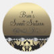 Este elegante personalizable dulce dieciséis pegatinas presenta un patrón de damasco dorado sobre un fondo negro. Personalizar añadiendo tus detalles en la letra de tu elección! POR FAVOR, TENGA EN CUENTA que las joyas son una imagen impresa.